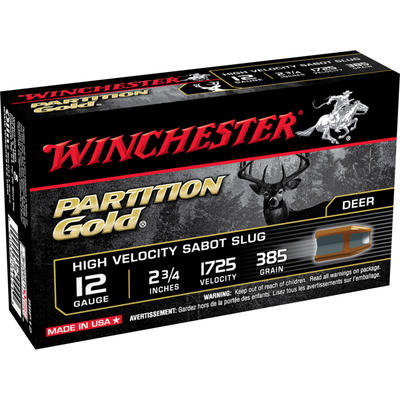 About $14 per box of five. Winchester supreme elite dual bond, 12ga, 2 3/4in., 375 gr, sabot, 5ct slug. Partition gold products are winchester's best. Designed for fully rifled barrels. Winchester is continuing a shotshell manufacturing pedigree of quality and innovation that extends back to 1886.