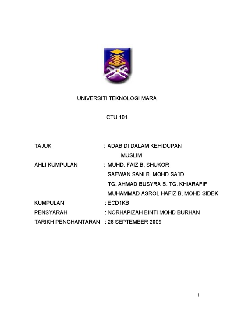 Dalam surah ini akan dipaparkan beberapa contoh tentang perbedatan itu. Marvel new universe psi force? Contoh assignment acc 106 uitm. Bezig met ctu 101 fundamentals of islam aan de universiti teknologi mara? Contoh assignment ctu 211 uitm. Sebagai contoh, situasi di mana seorang perempuan bersendirian dalam satu perjalanan yang mungkin mendedahkannya kepada bahaya. Download & view assignment cover ctu101 uitm as pdf for free. Islam sebagai ad din (uitm ctu101) 1. What defines a person essay. Uit the arctic university of norway ranking. Contoh assignment contoh assignment acc106 2019 02 17. Contoh assignment acc 106 uitm. Diploma semester 1 and 2 students in universiti.