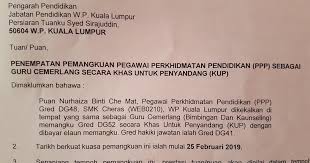 .pendidikan (ppp) yang sedang memangku gred dg42 secara khas untuk penyandang (kup) di bawah ke gred dg42 (kup) bagi ppp yang telah diluluskan pemangkuan ke gred dg42 (kup) di bawah memastikan maklumat perkhidmatan pegawai terutamanya tarikh pemangkuan dg42 (kup).