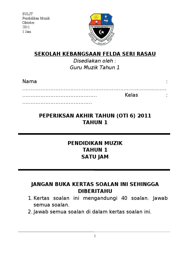 Soalan pendidikan muzik tahun 1.